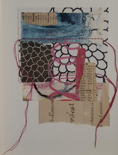 Steeds terugkerende elementen in het werk zijn: oude foto's, oude advertenties, cijfers en tabellen, metalen ornamenten, kant, textiel en papier.